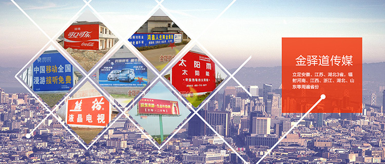 合肥金驛道廣告有限公司作為安徽省專營全國墻體廣告制作發(fā)布業(yè)務的一線品牌傳播公司---,10多年的運作經(jīng)驗沉淀和積累及優(yōu)化管理,不斷創(chuàng)新超越自我、發(fā)展壯大!目前組織管理幾十支訓練有素、經(jīng)驗豐富的專業(yè)墻體廣告施工隊伍,秉承高品質(zhì)服務、規(guī)模化的發(fā)展宗旨,立足安徽、江蘇、湖北3省,輻射河南、江西、浙江、湖北、山東等周遍省份,主要負責安徽墻體廣告,合肥墻體廣告,安徽墻體廣告,墻體噴繪等具備多省份同時大規(guī)模運作墻體廣告業(yè)...